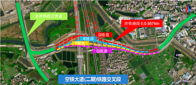 本次主线贯通,攻克了全线建设中最艰难的下穿铁路段。这段长约1公里的路段,是整个空铁大道(二期)工程最后,也是最关键的攻坚节点。