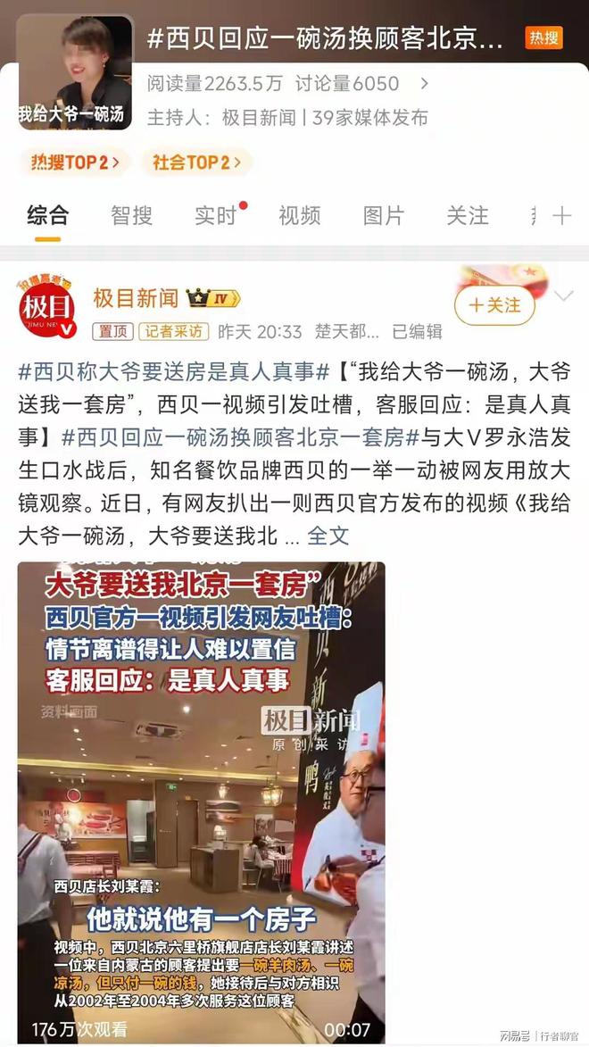 一则企业内部的“励志小故事”,让西贝再次被推上舆论风口。9月下旬,西贝官方公众号“西贝品味早读”发布的视频中,前店长刘某霞讲述的“一碗汤换一套房”传奇,本想传递服务精神,却因逻辑硬伤与合规争议炸上热搜 。